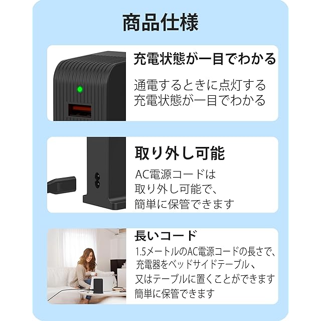 【耐久性のあるUSB充電器】USB コンセント外側の材料はABS+PC難燃材を採用し、充電時の安全性を確保するだけでなく、耐久性も向上します。