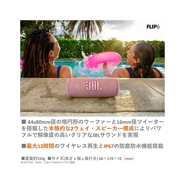 商品名:JBL FLIP6 Bluetoothスピーカー 2ウェイ・スピーカー構成/USB C充電/IP67防塵防水/パッシブラジエーター搭載/ポータブル ピンク JBLFLIP6PINK