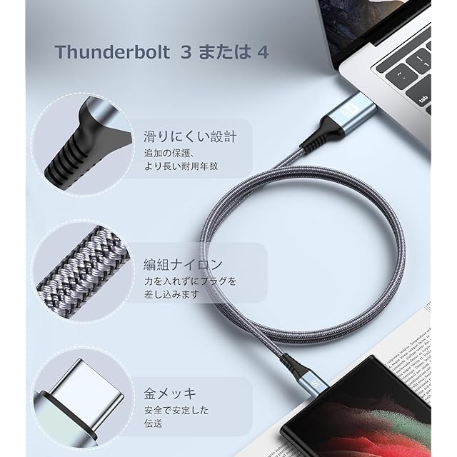 【4K@UHD 解像度出力】Thunderbolt 3で、大画面変換。4K(3840*2160)動画配信やデータ転送ができます。タブレット/ノートパソコンからHDMIデバイスに接続して、4Kの鮮やかな色と鮮明な画像が示される。残像感を大幅に削減し鮮明な映像を楽にご視聴いただけます。下位互換性備え、2K@60Hz、1080p@60Hz、1080I、720p等のHD解像度にも対応しています。何のインストールもなし、接続次第手軽に御利用できます。