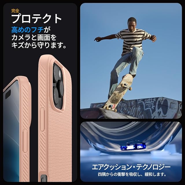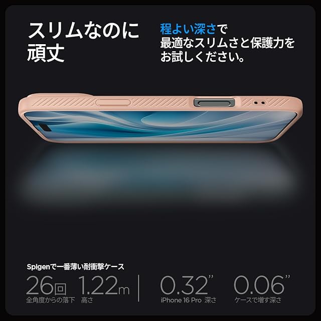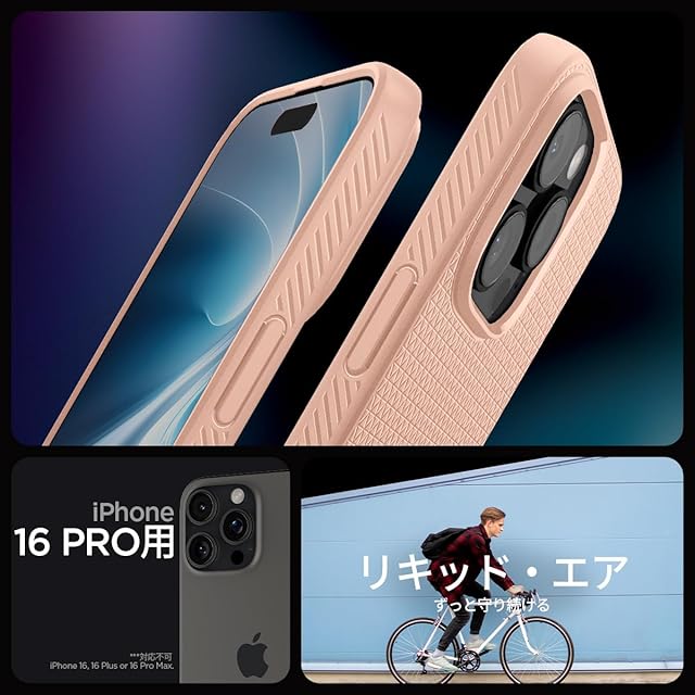 Spigen iPhone 16 Pro ケース 米軍MIL規格 ストラップホール マット TPU バンパー 耐衝撃 リキッド・エア ACS08692 (ローズ・チタニウム) | TREND DESIGN 家電専門店