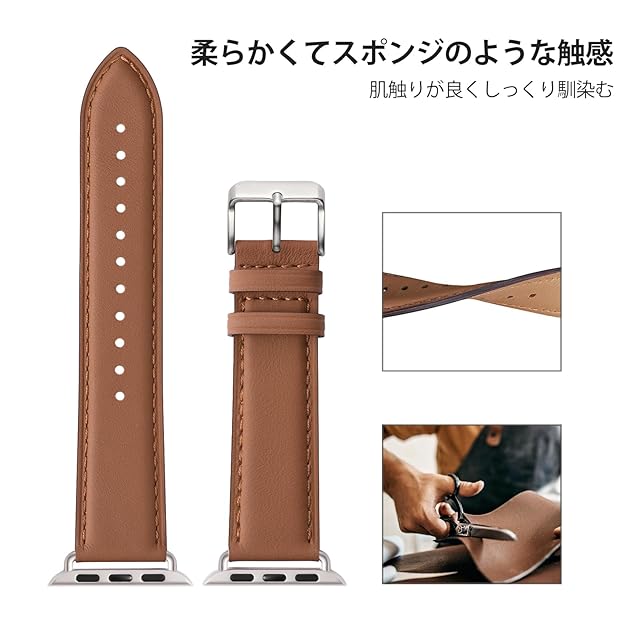 コンパチブル アップルウォッチ バンド 革 46mm 42mm 44mm 45mm 49mm 40mm 41mm 38mm コンパチブル Apple Watch バンド 本革 レザー ビジネス 男女兼用 コンパチブル iWatch Ultra/Ultra2/SE/SE2/Series10/9/8/7/6/5/4/3/2/1に対応(ブラウン/スターライト) | TREND DESIGN 家電専門店