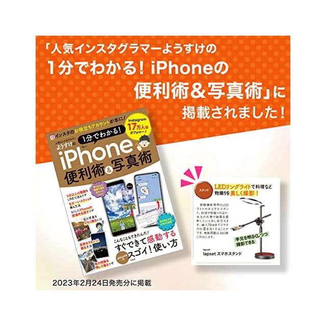✅「人気インスタグラマーようすけの1分でわかる!iPhoneの便利術&写真術」に掲載されました。今話題の LED俯瞰スマホスタンドです。✅真上から''パシャッ''! 映え''の便利グッズ 俯瞰LEDスマホスタンド✅【卓上使いに丁度良い卓上タイプ】この俯瞰スマホスタンドは卓上で使いやすい卓上タイプです。手元撮影をしたい方や、アクセサリーやネイルの仕上がりの撮影などを上から撮影する方などにピッタリのスマホスタンドです。リングライトの角度を調整できるのであなたにぴったりの光の角度で使えるのがとても便利です。