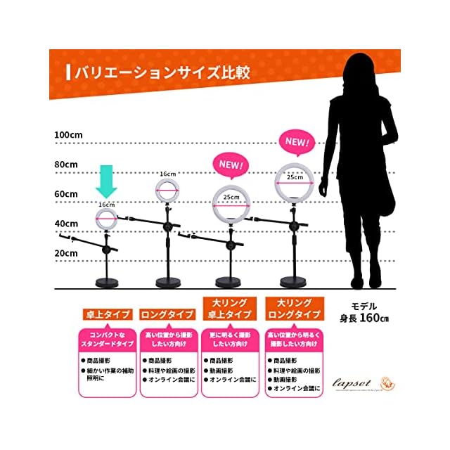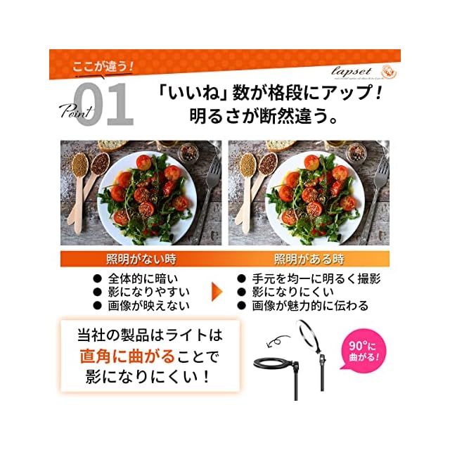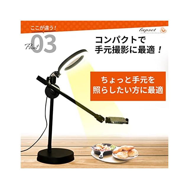 商品名:lapset 【iPhone専門誌 雑誌掲載モデル】 スマホスタンド 俯瞰撮影 LED ライト付き 日本語取扱説明書 卓上タイプ (伸縮無しタイプ)