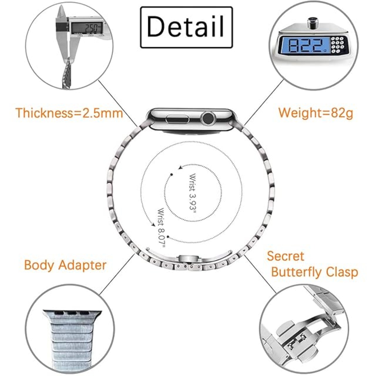 <b>互換性:<br></b> Apple Watch Basic/Sport/Edition、シリーズ10/シリーズ9/シリーズUltra 2/シリーズSE/シリーズ8/シリーズ7/シリーズ6/シリーズ5/シリーズ4/シリーズ3/シリーズ2/シリーズ1、すべて2024-2015バージョン<br/> <br> <b>Apple Watchバンドサイズ:<br></b> 10シリーズ46mm=超2シリーズ49mm=9シリーズ45mm=SEシリーズ44mm=8シリーズ45mm=超49シリーズ=45mm=6/SE/5/4シリーズ44mm=3/2/1シリーズ42mm<br/> 10シリーズ42mm=9シリーズ41mm=SEシリーズ40mm=8シリーズ41mm=7シリーズ41mm=6/SE/5/4シリーズ40mm=3/2/1シリーズ38mm<br/> <b>**注意:iwatchが3/2/1シリーズ42mmの場合は、46mm/45mm/44/49mmサイズ**<br></b> <br> <b>梱包内容:</b><br> 1* リストバンド<br> 1* 調整ツール <br> ** iWatchは含まれていません!**