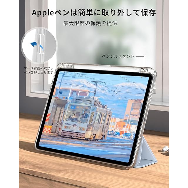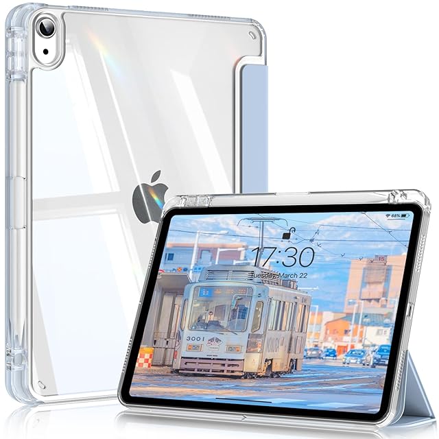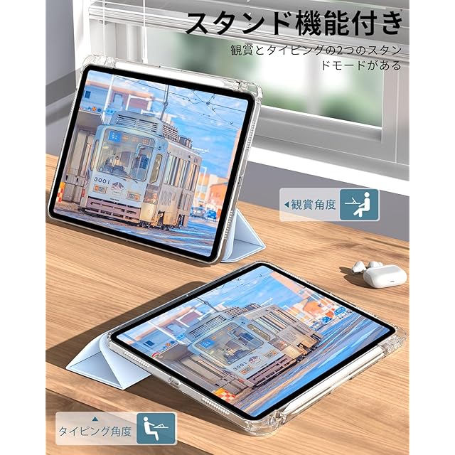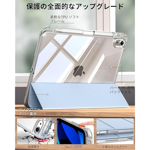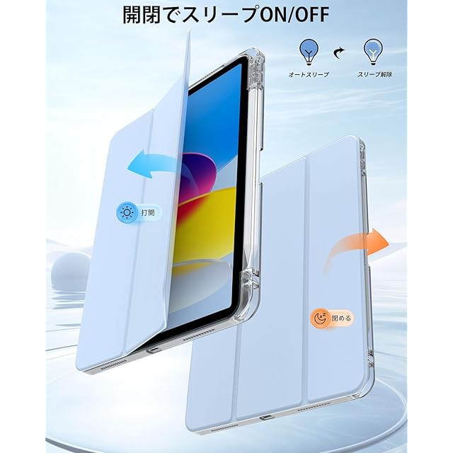 SQBEBS iPad 11世代 ケース (A16) 2025 iPad 第11/10世代 10.9インチ 2022 透明 アクリル カバー ペンシルホルダー付き 三つ折りスタンド Touch IDと オートスリープ 機能対応 超スリムス 耐衝撃 PU合成レザー カバー ライトブルー | TREND DESIGN 家電専門店