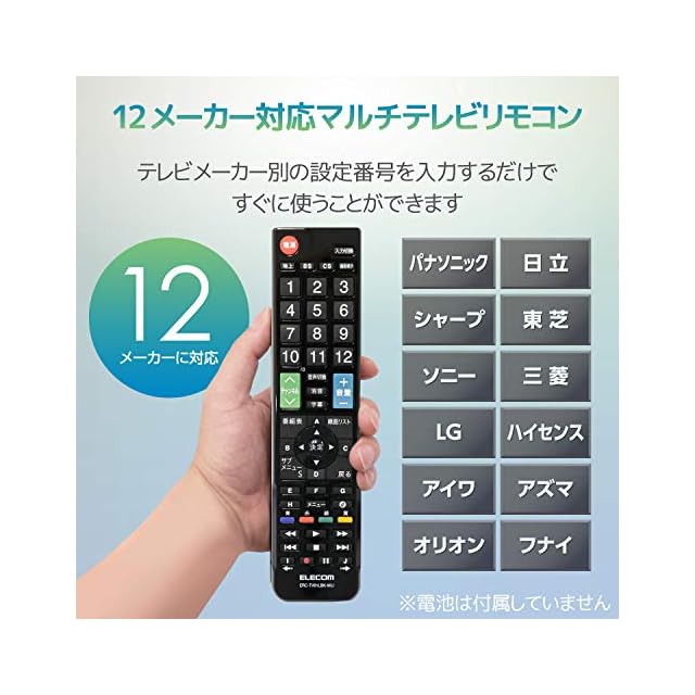 商品名:エレコム テレビリモコン 12メーカー対応 【 パナソニック 日立 シャープ 東芝 ソニー 三菱 LG ハイセンス アイワ アズマ オリオン フナイ 】 Lサイズ ブラック ERC-TV01LBK-MU