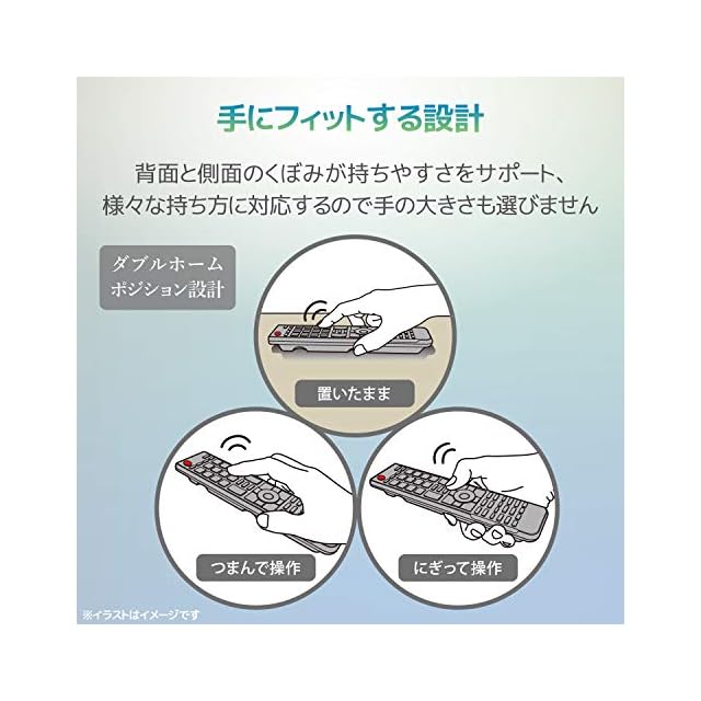 リモコン操作時に多い3つの使い方(つまんで操作、握って操作、置いたまま操作)に対応しています。