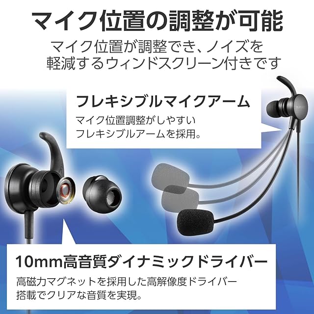 オンラインゲーム、Web会議・ビデオ通話、音声チャットでの使用に最適なマイクアーム搭載の耳せんタイプのUSBヘッドセットです。