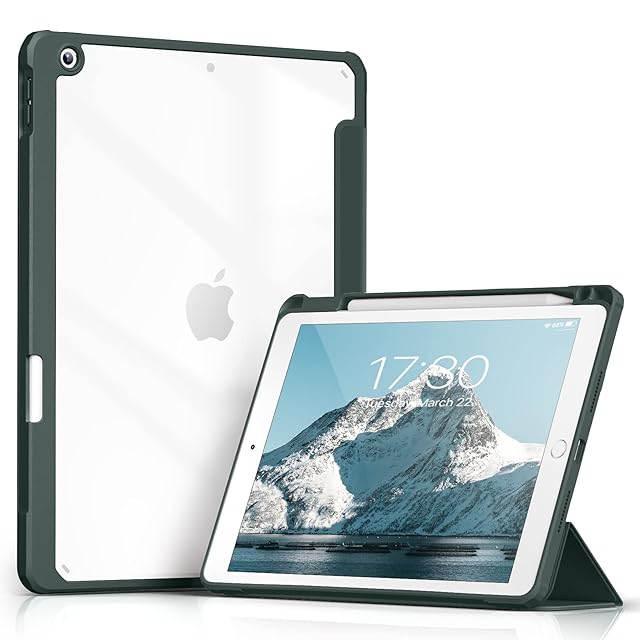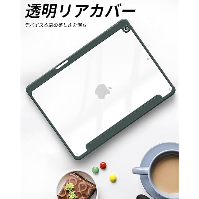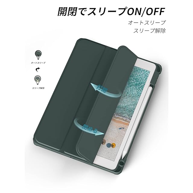 商品名:Aoub iPad 9世代 ケース 10.2 インチ 透明バックカバー ペン収納 iPad 第9/8/7世代 ケース 2021 2020 2019 三つ折スタンド オートスリープ機能 軽量 薄型 傷つけ防止 PU合成レザー TPU (モデル番号A2602、A2603、A2604、A2605) パイングリーン