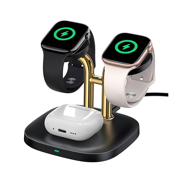 【3in1充電|2台のApple Watchに対応】2台のApple Watchとイヤホンを同時に充電可能。ご家族やカップル、同僚とシェアするのに最適な設計です。