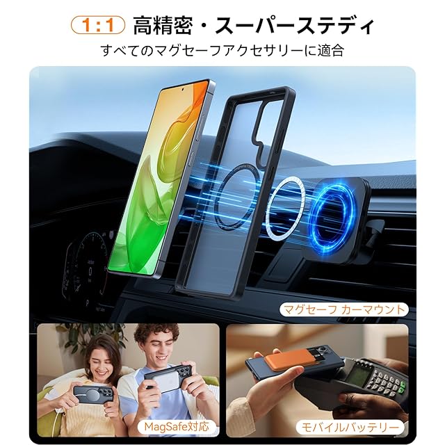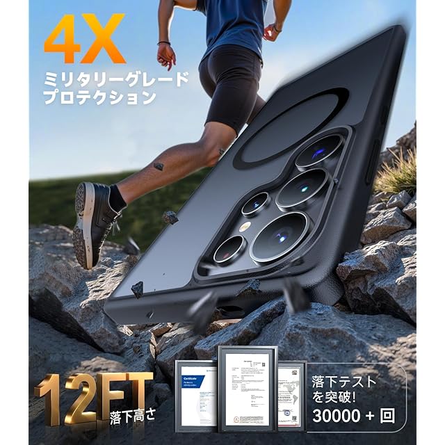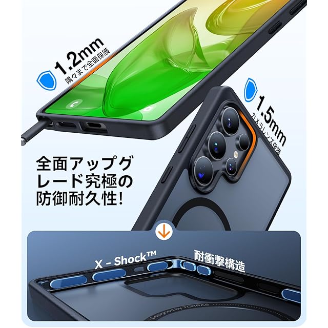 【本当か!特許を取得したマグネット!これこそ驚異的な安定性だ!】TORRASのGuardian-Magは、世界累計1100万台販売実績、多くのユーザーの好みの選択肢になっている。最新のGuardian - MagはGalaxy S25 Ultraに対して、より優れた保護と磁力を提供できる。特許技術に基づくN52マグネットは最適な配列で設計されて、従来ケース比40%増の吸着力を実現しながら、MagSafe/Wireless Charger/車載ホルダー等あらゆる磁気アクセサリーと完全互換。また、レーザー計測技術によるGalaxy S25 Ultra専用金型設計。筐体との間隔を0.03mm以下に制御し、磁気リングがデバイス本体と分子結合レベルの密着を実現。軽く吸着して、瞬時に強力で精密にフィットする。迷わずこのGalaxy s25 ultra 用のケースを使える。どんな揺れにも強く、しっかり固定されているから、簡単に外れない。Galaxy S25 Ultra ケース Magsafe対応 耐衝撃