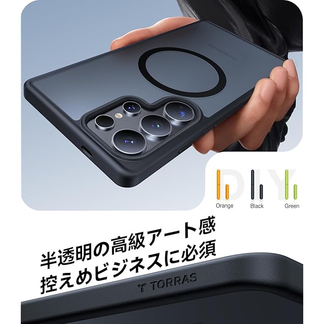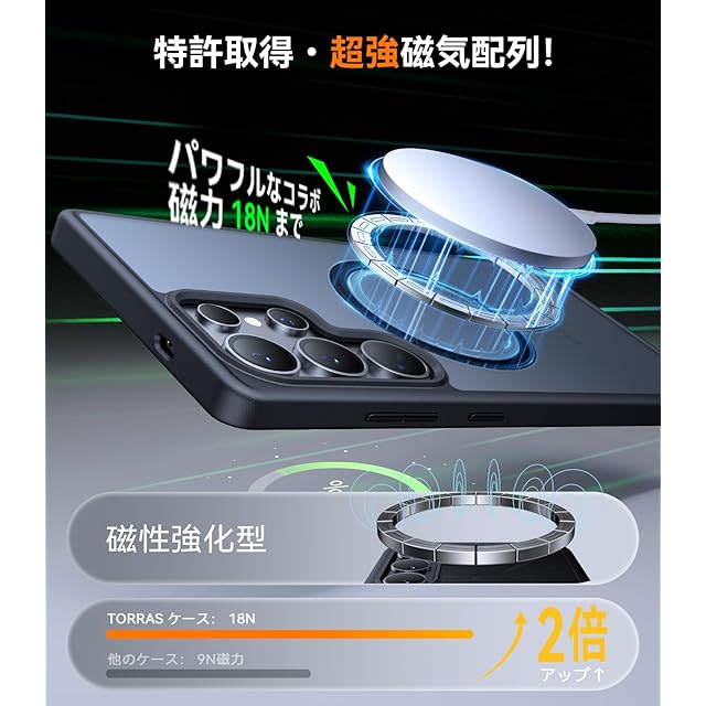 商品名:TORRAS Galaxy S25 Ultra 用 ケース【米軍保護工学・高精密Magsafe対応】マグネット搭載 耐衝撃 ワイヤレス充電対応 マグセーフ対応 黄変防止 半透明 マット 黄ばみなし ストラップホールあり Guardian-Mag ブラック