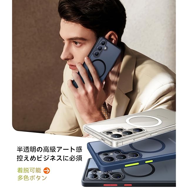 【半透明美学・さようなら黄ばみ】Galaxy S25 Ultra ケース背面が透ける特性を汲み取った半透明デザインで、意図せず現れた上品感が溢れている。マグネットのデザインが目立ちせずうまく馴染んでくれています、目にした瞬間に心引き込まれる。背面が艶消しマット質感でまるでベルベットのように優しく心地よいを楽しめ、優しい手触り触るだけで心が癒される。さらに、マット質感×ベルベット触感のハイブリッド設計で、指紋付着率を従来比72%低減。半透明+黒の二色構造で黄ばみの心配が一切なく、黄ばみに悩んでいる方に大正解!今までにない耐久性を持つ、長年でも「Guardian-Mag」だけで十分!対応機種:Galaxy S25 Ultra用