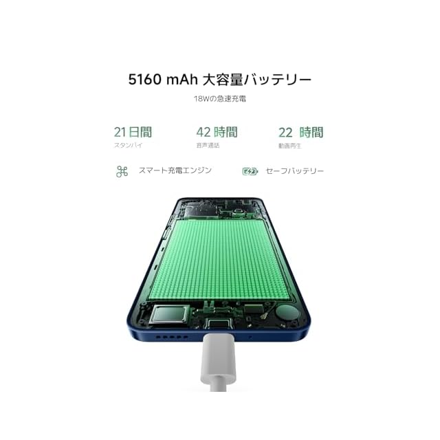 【安心して一日を過ごせる5160mAhの大容量バッテリー】大容量バッテリーと高速充電の理想的な組み合わせ。Redmi 14Cは、スマート充電エンジンと安全なバッテリー技術を搭載し、長寿命で健康的なバッテリーを実現します。