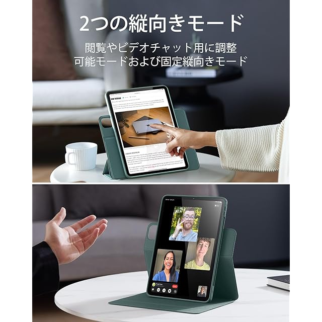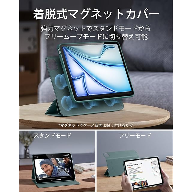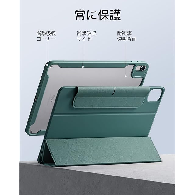 ESR iPad Air 11インチ ケース (M3/M2、2025/2024) iPad Air 第5/4世代 ケース(2022/2020)専用 Pencilホルダー付き 取り外し可能マグネットカバー 縦置き/横置きスタンド Pencil Pro/USB-C完全対応 Rebound 360シリーズ グリーン | TREND DESIGN 家電専門店
