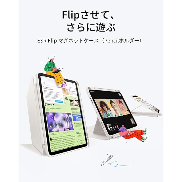 ESR iPad Air 11インチ ケース(M3/M2、2025/2024) iPad Air 第5/4世代 専用カバー(2022/2020) ペン収納 耐衝撃 縦横スタンド 自動ウェイク/スリープ Pencil Pro/USB-C ワイヤレス充電対応 マルチアングルケース 11インチ/10.9インチ Flipシリーズ スターバースト