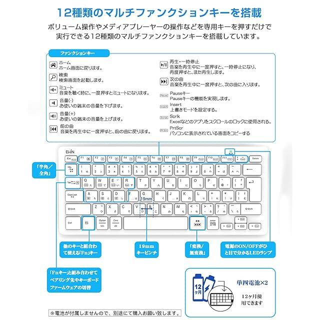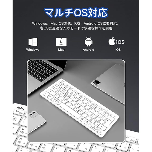 商品名:Ewin Bluetoothキーボード 日本語配列 マルチペアリング 3台同時接続 タブレット スマホ アイパッド ノート PC用 iOS Android Windows Mac対応 スタンド付き 在宅勤務 リモートワーク用 かな入力 ワイヤレス キーボード ホワイト