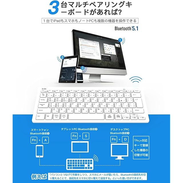 Ewin Bluetoothキーボード 日本語配列 マルチペアリング 3台同時接続 タブレット スマホ アイパッド ノート PC用 iOS Android Windows Mac対応 スタンド付き 在宅勤務 リモートワーク用 かな入力 ワイヤレス キーボード ホワイト | TREND DESIGN 家電専門店