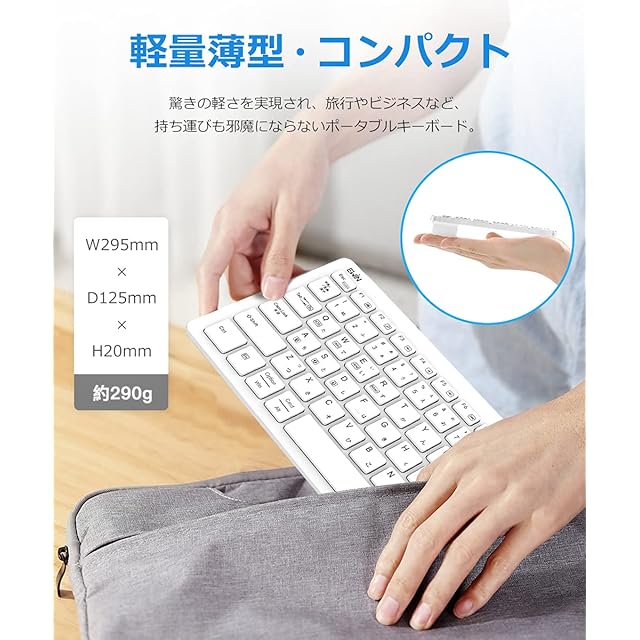 【それぞれのOS最適化した入力モード、最新技術のBluetooth5.1を搭載】 Windows/Android/Mac/iOSのそれぞれに最適化した入力モードを搭載しています。 基本的に Bluetoothを搭載しているiPad、スマホ、PCなど、各種の端末にすべて対応できます。 最先端Bluetooth 5.1を採用しており、転送速度や範囲が飛躍的に向上し、従来の製品と比べて、 よりスムーズなタイピングを行うことが可能になります。
