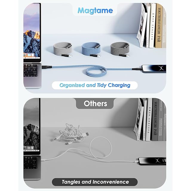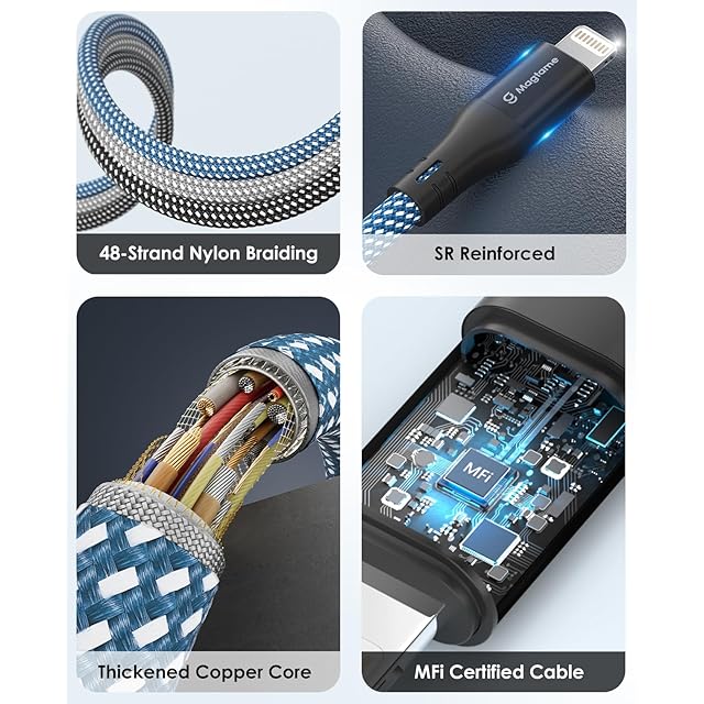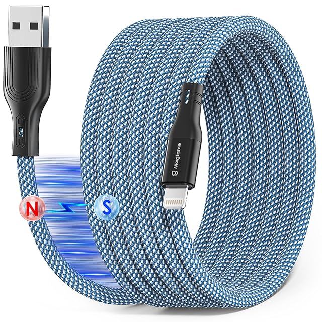 Magtame iphone-充電ケーブル ライトニングケ_ーブル 磁力吸引絡まり防止機能 アイフォン充電ケー_ブル 2.4A急速充電 MFi認証 lightningケーブ_ル 金属製コネクタ iphoneケーブル iPhone14/13/12/11/X/Pro Max/iPad/AirPods等対応(1.5M-ブルー)