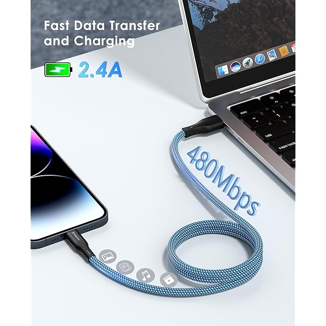 2.4A急速充電、480Mbpsデータ転送:本アイホン充電ケーブルは最大2.4Aの高出力でiPhone/iPad/iPodシリーズを充分な速度で急速充電!iPhone、iPad、iPodをMacBook等のノートPCと接続して、楽に動画や写真、音楽等のデータの転送が可能です。