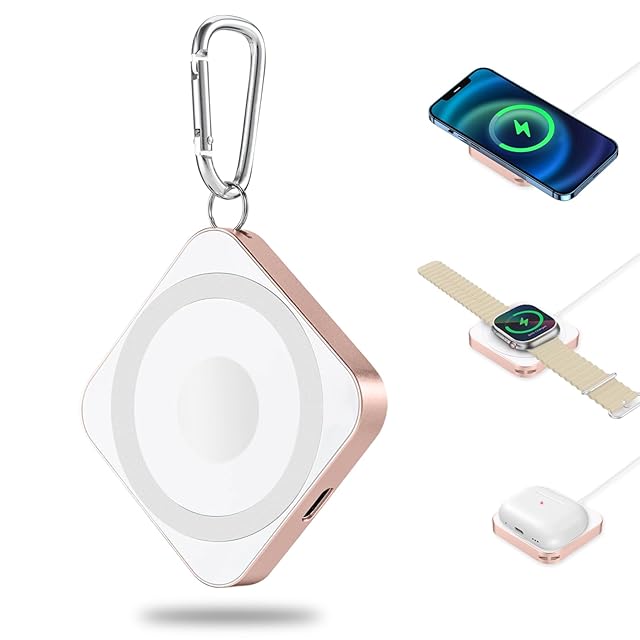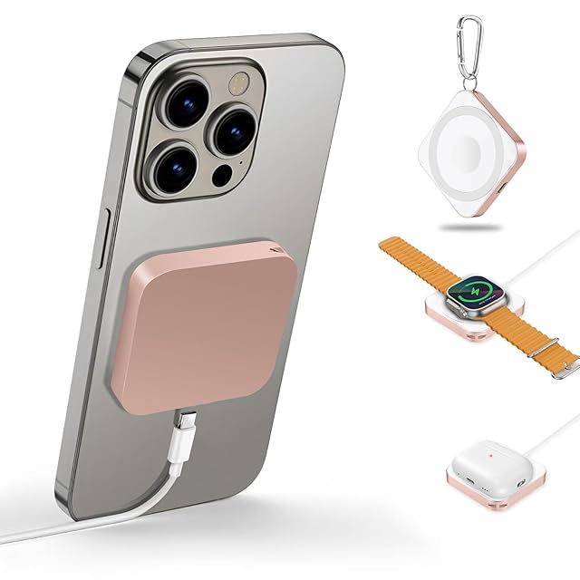 【2025 新設計】ワイヤレス充電器 AFFLIC 業界極小サイズ 3in1 対応 MagSafe充電器 マグネット式 iPhone16/15/14/13/12シリーズに対応 マグセーフ充電器 USB-C/ライトニング充電ケーブルが必要 対応 Apple Watch充電器 超軽量 方型 最大15W AirPodsに対応 アップルウォッチ 充電器全シリーズ (ローズゴールド)