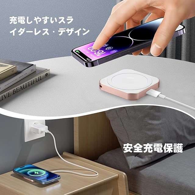 商品名:【2025 新設計】ワイヤレス充電器 AFFLIC 業界極小サイズ 3in1 対応 MagSafe充電器 最大15W マグネット式 iPhone16/15/14/13/12シリーズに対応 USB-C/ライトニング ケーブルが必要 最大15W対応 Apple Watch/AirPods/アップルウォッチ全シリーズ 超軽量 方型 出張·旅行·オフィスに最適 (ローズゴールド)