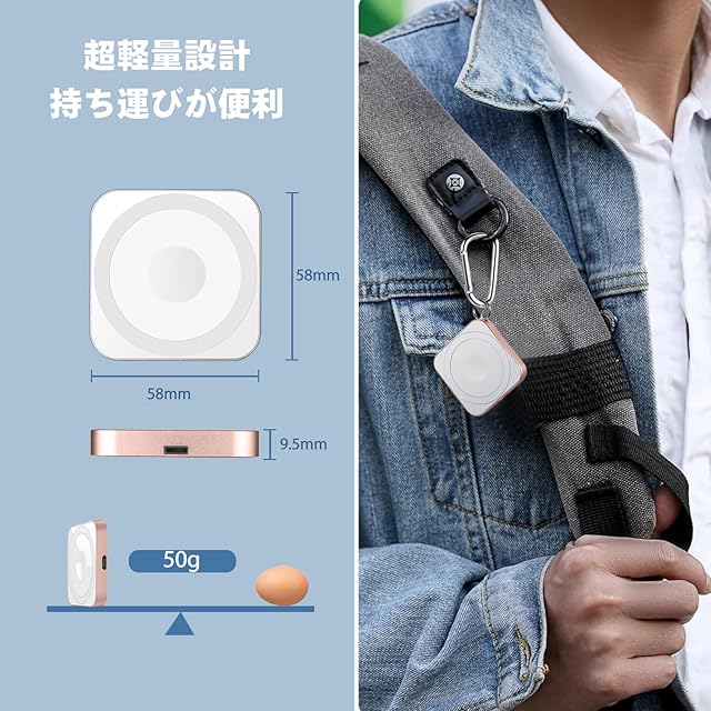 【持ち運びが便利】このマグセーフ充電器 はアルミニウムとPCで作られており、金属フレームが高級感を与え。軽くて持ち運びに便利です。方型設計 超軽量は50g。キーリングが付属しており、鍵やバックパックに取り付けることができるため、紛失の心配はありません。出張/旅行/自宅/オフィスに最適。