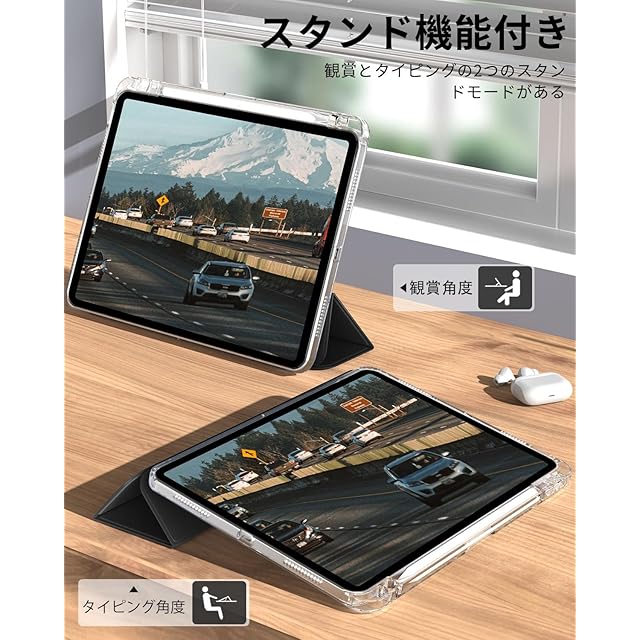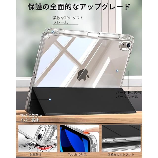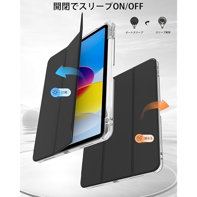 商品名:SQBEBS iPad 11世代 ケース (A16) 2025 iPad 第11/10世代 10.9インチ 2022 透明 アクリル カバー ペンシルホルダー付き 三つ折りスタンド Touch IDと オートスリープ 機能対応 超スリムス 耐衝撃 PU合成レザー カバー ブラック