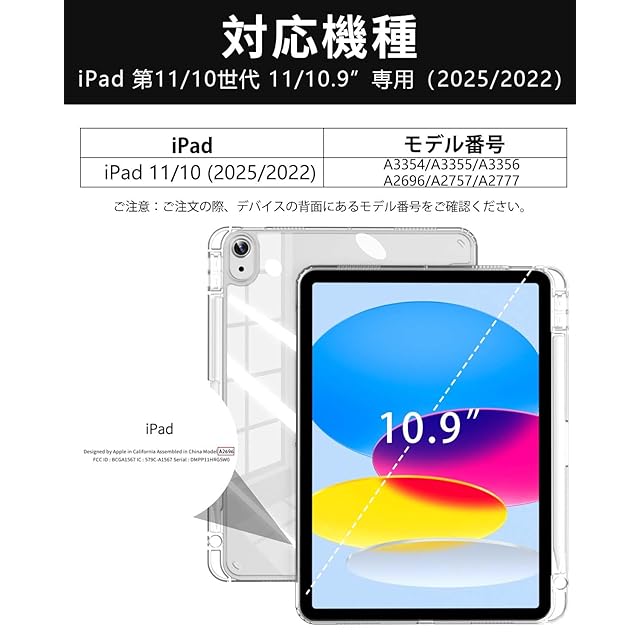 【対応機種】SQBEBS ケース iPad 11世代 (A16) 11インチ 2025 / 第10世代 10.9インチ 2022 に適用します。 (モデル番号:A3354/A3355/A3356/A2696/A2757/A2777)。ご注意:他のiPadモデルとは互換性がありません、ご注文の際、デバイスの背面にあるモデル番号をご確認ください。
