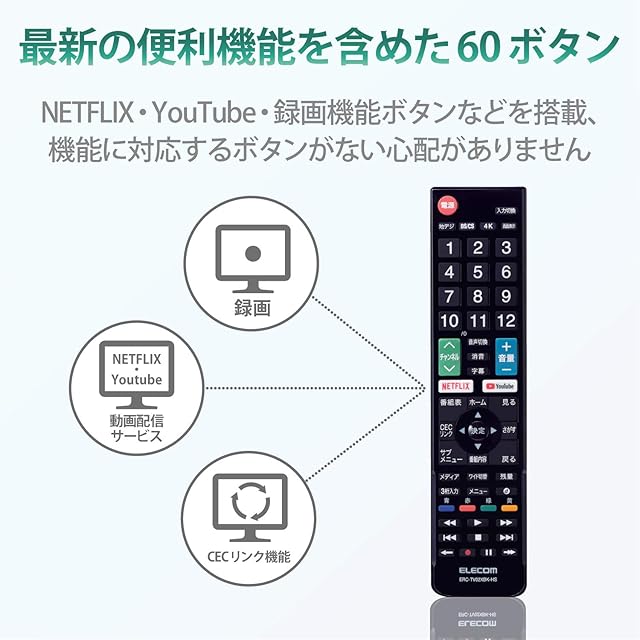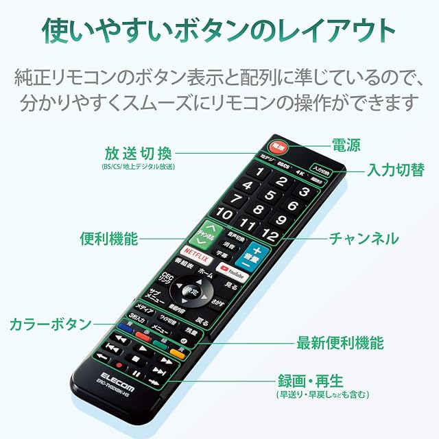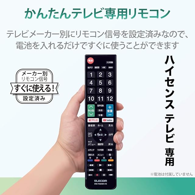 商品名:エレコム テレビリモコン Hisense ハイセンス用 【設定不要ですぐに使えるかんたんリモコン】 ブラック ERC-TV02XBK-HS