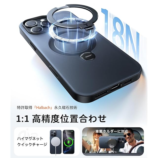 商品名:TORRAS iPhone 16 Pro 用 ケース【カメラ操作カバー付き|360° 定点スタンド x 10 万回開閉耐久】 ゼンマイ式スタンド米軍規格 縦横両対応 リング付き マグネット搭載 ワイヤレス充電対応 耐衝撃 防指紋 半透明 Ostand Spin ブラック(カメラコントロール版)