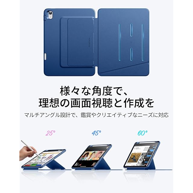 ESR iPad Air 11インチ ケース(M3/M2、2025/2024) iPad Air 第5/4世代 専用カバー(2022/2020) ペン収納 耐衝撃 縦横スタンド 自動ウェイク/スリープ Pencil Pro/USB-C ワイヤレス充電対応 マルチアングルケース 11インチ/10.9インチ Flipシリーズ ネイビーブルー