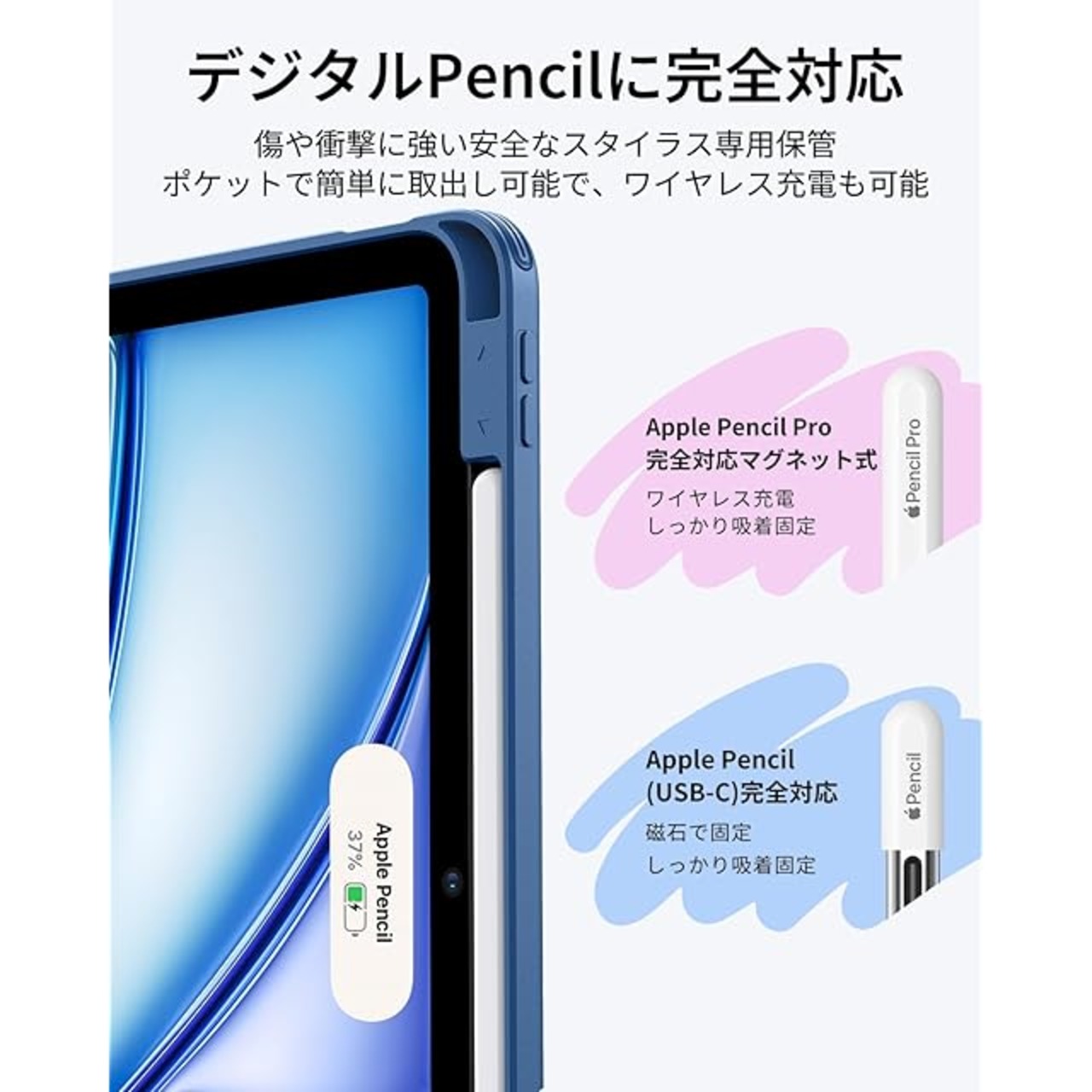 【互換性】:iPad Air 11インチ (M3/M2、2025/2024モデル)、iPad Air 10.9インチ (第5/4世代、2022/2020モデル) に対応。モデル番号:A3266、A3267、A2902、A2903、A2316、A2324、A2325、A2072、A2588、A2589、A2591。ご注意:iPad 11世代(11インチ)と他のiPadモデルには非対応です。互換性を確認するには、iPadの背面下部にあるモデル番号「AXXXX」を確認してください。
