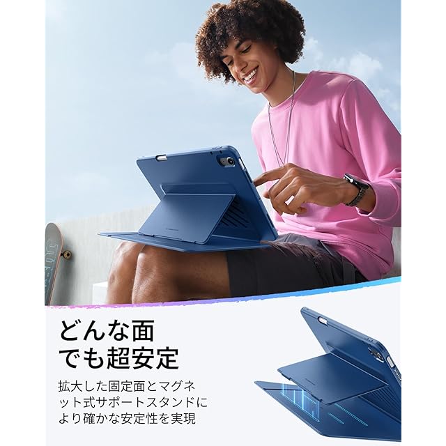【超安定スタンド】: 幅広いカバーと強力なマグネットブラケットで設計された当ケースは、ソファ、ベッド、手、膝の上など、どのような表面でも安定し、滑ることなく安定性を保ちます