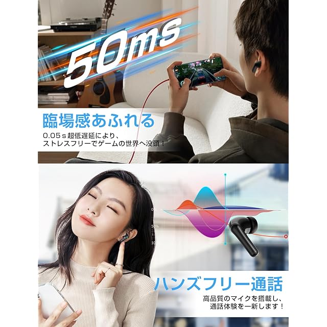 【幅広いデバイスに対応&安全安心】スマートフォン、タブレット、ノートパソコンなど、多くのデバイスとシームレスに接続可能です。iPhoneからAndroidまでマルチデバイス対応に加え、この人気のブルートゥース イヤホンはシングルイヤー使用も可能。イヤホン片耳だけでも利用できるので、通話や音楽を楽しむことができます。アクティブなライフスタイルに最適な選択肢です。本Bluetoothイヤホンは電波法に適合した技適マークを取得済み製品(周波数帯2.40〜2.48GHz)で、安心してお使いいただけます。【IPX7防水&耐久性&高性能&劣化しにくい電池】防水・防滴性能で、雨の日も、汗をかいた日も使えます。激しい運動中(ランニング、トレーニング)でも、ブルートゥース イヤホンの安全性がされています。耐摩耗性と耐腐食性に優れ、美しい状態を保ちます。リチウムポリマー電池を採用し、高性能を長期間にわたって維持します。【スタイリッシュなパッケージ】2つのイヤホン、充電ケース、イヤーピース(S/M/L)、日本語取扱説明書、充電ケーブルを提供!生活をより快適でスマートに。