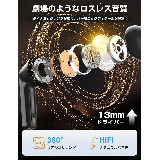 【驚くべきHiFi音質&Bluetooth 5.4】ケーブルの束縛から解放され、まるで空間が広がったかのような臨場感溢れる音楽体験を提供する次世代ワイヤレスBluetoothイヤホン登場!繊細で滑らかな音の再現に優れる革新的なAAC、SBCデコード技術と、迫力満点の重低音を得意とする高性能13mmダイナミックドライバーを組み合わせ、深みのあるリズムで高解像度の音質を忠実に再現します。この音楽ファン向けのイヤホンは、図書館、電車、または自宅で、高クオリティかつリアルなビデオをお楽しみいただけます。Bluetooth 5.4は、Bluetooth 5.0と比べて、データ転送速度が大幅に向上し、複雑な環境下での信号安定性と効率性が飛躍的に進化しました。これにより、イヤホンBluetooth接続は超低遅延で安定し、バッテリー消費も削減され、幅広いアプリケーションに対応します。また、10m以内でメモリ機能で自動ペアリング!このブルートゥース イヤホンを見逃すな!