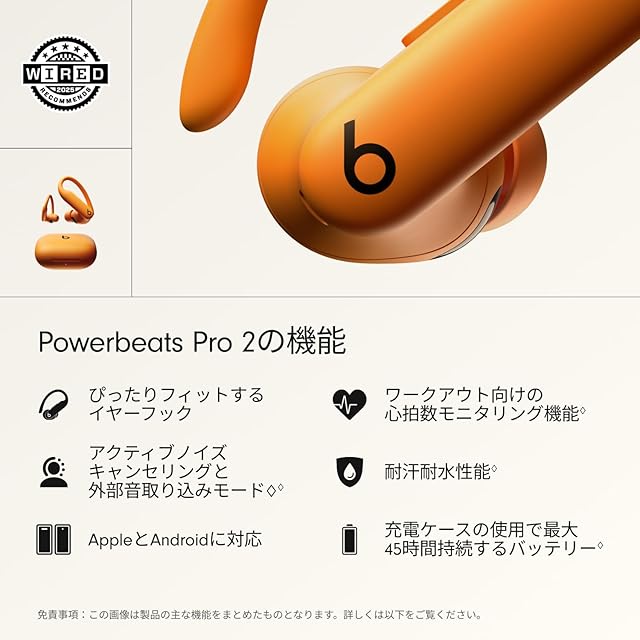 Beats Powerbeats Pro 2 ワイヤレスイヤホン - アクティブノイズキャンセリング, Apple H2, IPX4耐汗耐水, 最大45時間の再生時間(ワイヤレス充電対応を使用した場合), AppleとAndroidに対応 - エレクトリックオレンジ | TREND DESIGN 家電専門店