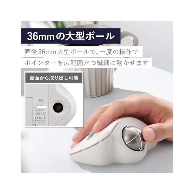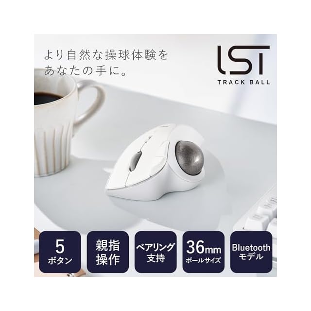 商品名:エレコム ワイヤレス トラックボールマウス Bluetooth IST ベアリング支持 親指操作 36mmボール 5ボタン Windows Mac Chromebook ホワイト M-IT11BRWH