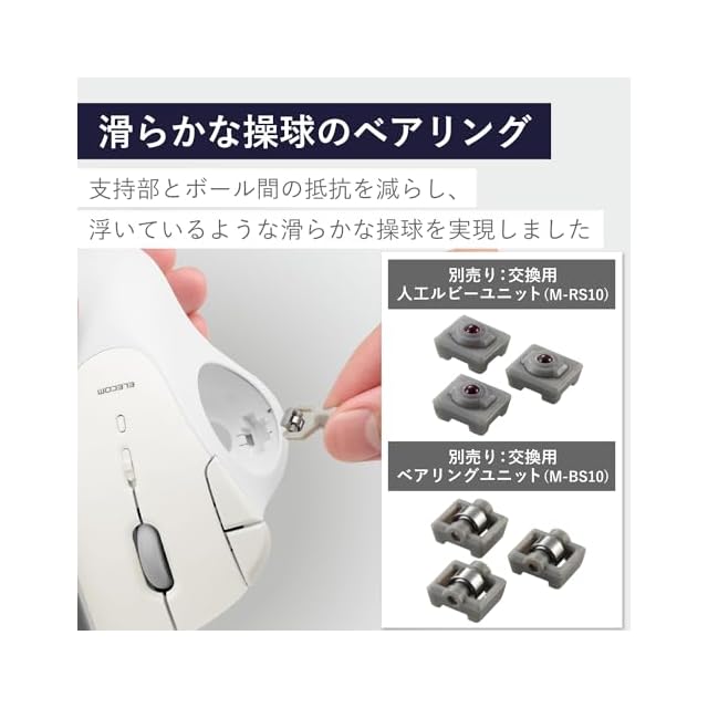 支持ユニットにはミネベアミツミ社製高性能ベアリングを採用。摩擦による抵抗が減るため、空中に浮いているような、なめらかな操球を実現しました。またボール表面を擦らないので、支持ユニットにゴミが集まりにくく、長期間メンテナンスフリーでご使用いただけます。