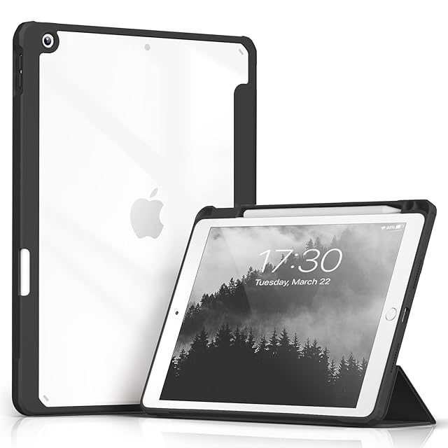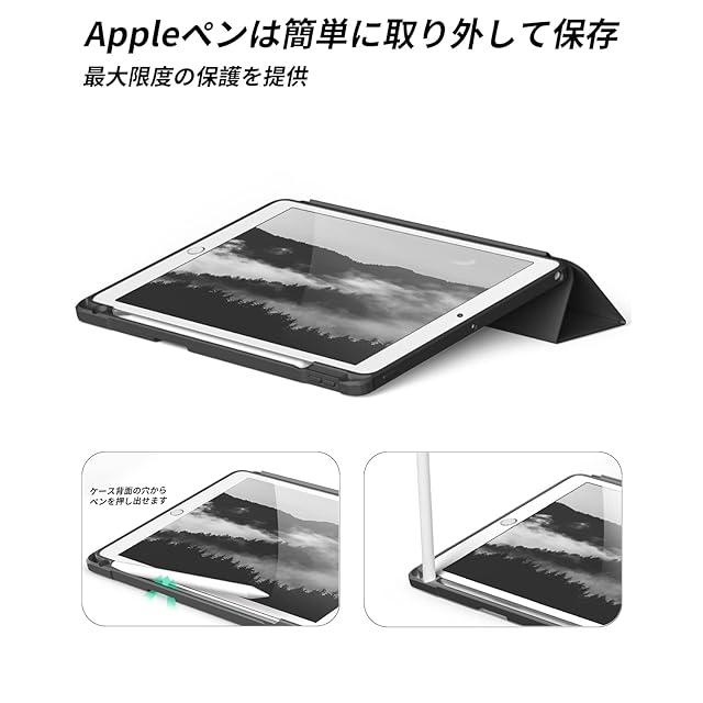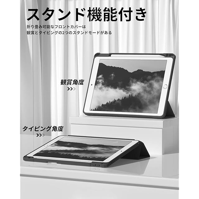 Aoub iPad 9世代 ケース 10.2 インチ iPad ケース 第9/8 /7世代 2021 2020 2019 透明バックカバー ペン収納 三つ折スタンド オートスリープ機能 軽量 薄型 傷つけ防止 PU合成レザー TPU (モデル番号A2602、A2603、A2604、A2605) ブラック | TREND DESIGN 家電専門店