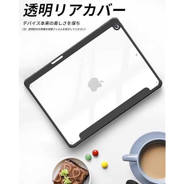 【材料・透明バックカバー】 ケースの表面はPUレザー素材を利用して、軽量、超薄を備えます。ポリカーボネート素材を採用している透明バックカバーは汚れや傷つけなどを防止するだけでなく、iPad本体の色と美しさも活かせます。透明バックカバーの枠は柔軟な TPUを採用して、取り付けも簡単にできます。フロントカバー内部材質はマイクロファイバーで、摩擦によって発生する傷を抑え、液晶画面を保護しきれいに保ちます。(注:透明部分の表裏の保護フィルムを剥がしてください)