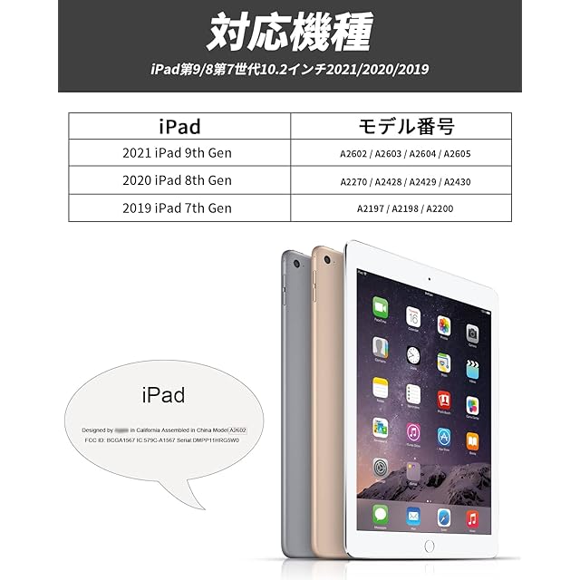 【対応機種】 iPad 10.2インチ 第9世代 2021(モデル番号:A2602/A2603/A2604/A2605)、iPad 10.2インチ 第8世代 2020 (モデル番号:A2270/A2428/A2429/A2430)、iPad 10.2インチ 第7世代 2019 (モデル番号:A2197 / A2198 / A2200) 専用スマートケース、カバー。(ご注意:iPadの他のモデルには対応していません、ご注文の際に、お手元機種の背面にあるモデル番号を確認をお願い致します。)