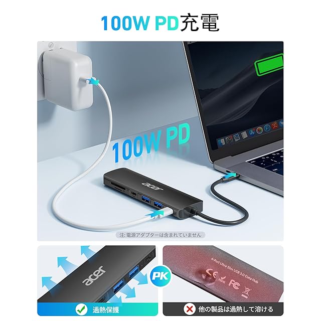 【高互換性】Acer Swift、Aspire、SpinなどのAcerモデルやMacBookなどの様々なノートブックに対応する汎用USBハブです。