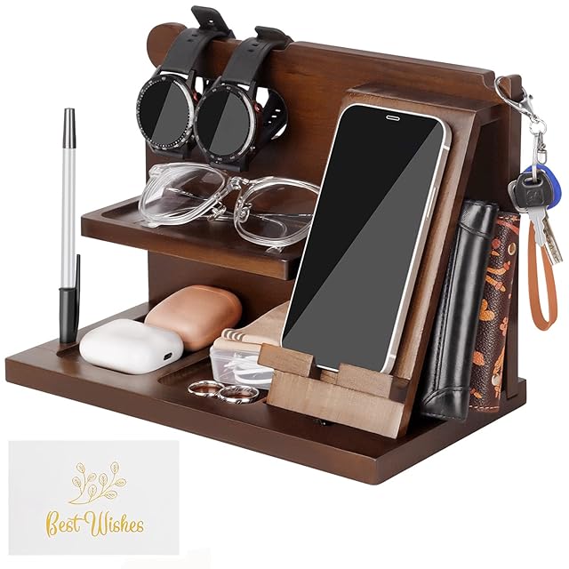 Gosear 誕生日プレゼント 男性 木製電話ドッキングステーション アッシュキーホルダー 財布スタンド 腕時計オーガナイザー メンズギフト 夫婦 記念日 父の日プレゼント 卒業式 男性 旅行アイデア ガジェット (B)