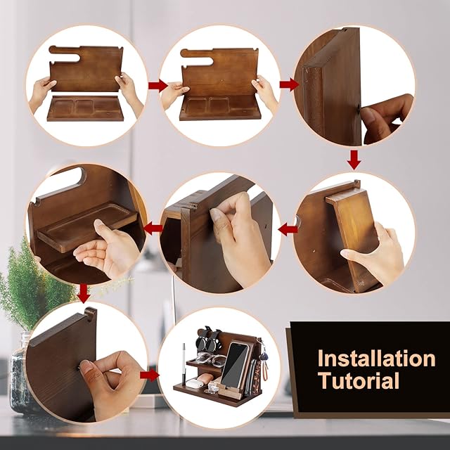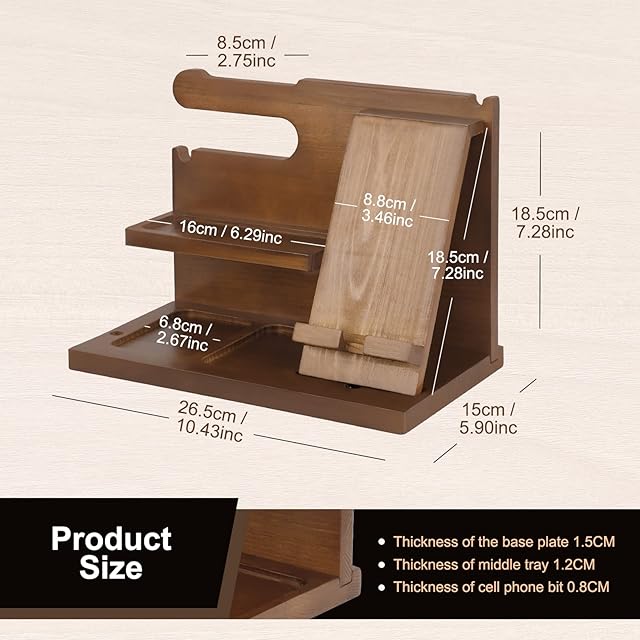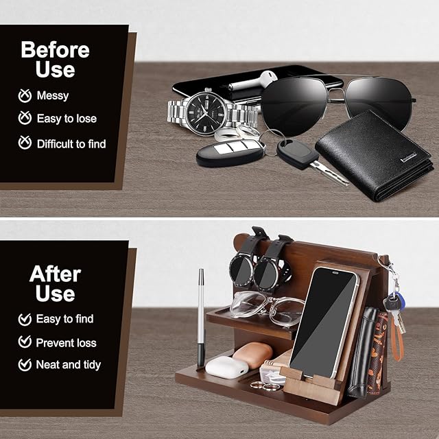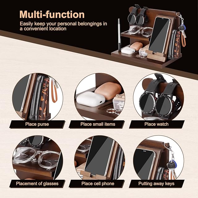 煩雑さはもうありません:スタイリッシュな木製の電話ドッキングステーションは、ガジェットに最適です。スタンドには、財布や鍵から携帯電話、時計、メガネまで、日常のアイテムをすべて1か所にまとめるのに十分なスペースがあります。すべてが整っており、不足しているものはありません