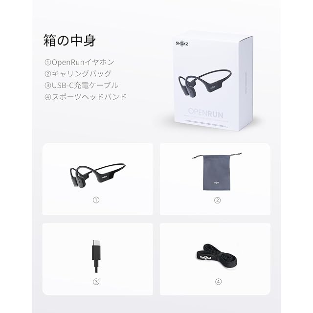 商品名:Shokz (ショックス) OpenRun Mini 骨伝導イヤホン ワイヤレス Bluetooth5.1 オープンイヤーヘッドホン 耳を塞がない 自動ペアリングヘッドフォン マイク付き ランニング・スポーツイヤフォン IP67防塵防水 スポーツヘアバンド付き 急速充電 8時間再生 ミニサイズ USB-C ブラック