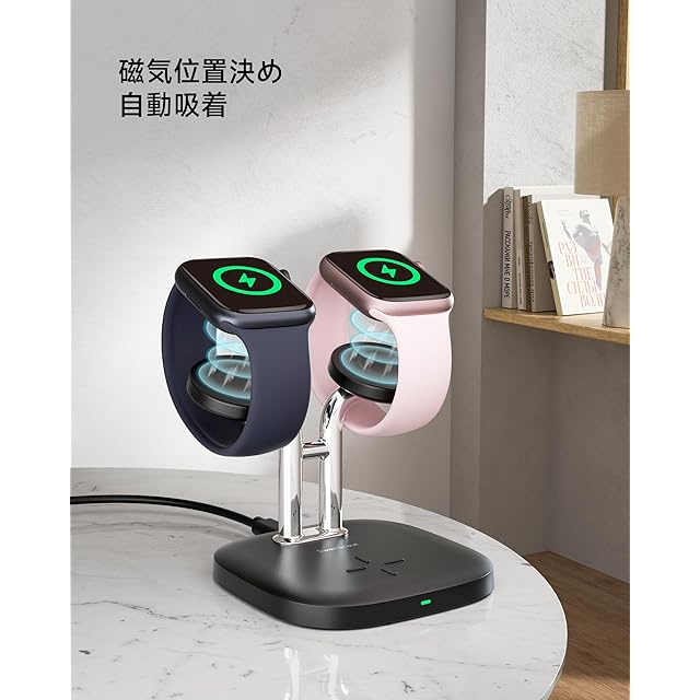 【洗練されたデザイン】上品でスタイリッシュなアップルウォッチ 充電器。デスクやベッドサイドがすっきりまとまり、お部屋に落ち着いた高級感を添えます。