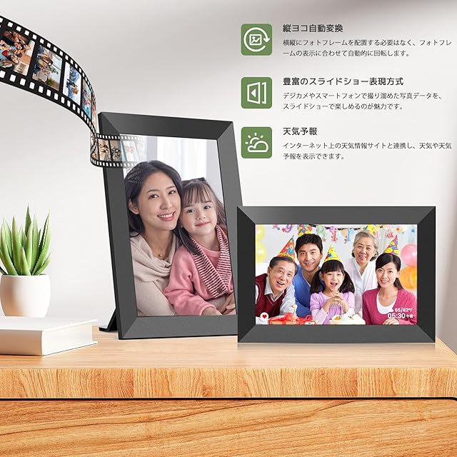 ⛅【2分間のビデオ再生・天気予報・定時オン/オフ】他のデジタルフォトフレームと比べて、2分間ビデオを再生出ます。子どもの初語、最初の第一歩を踏み出すの瞬間を十分に再生出来ます。画面の右下角は天気を表示します。外に出て日焼け止めをしても、雨が降っても傘を持っていても事前に準備できます。指定の時間にディスプレイを表示と閉じます。閉じる状態で、時計を表示できます。