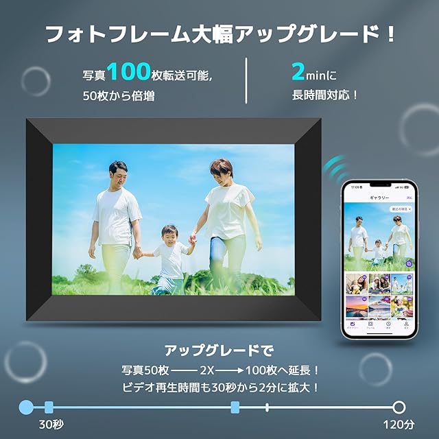 【32GBメモリ内蔵・32GB SDカード拡張可】32BG大容量メモリー内蔵、約16000枚の写真を鑑賞できます。最大まで32GBマイクロSDカード(別売)を対応できて、写真をSDカードに転送すること、アルバムを作ってプレゼントするような気分にもなります。*SDカードから直接表示ができます。表示しない、内部メモリーに転送する必要がある場合は、最新バージョンにアップグレードしてください。